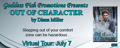 Goddess Fish Promotions is organizing a Virtual Book Blast Tour for OUT OF CHARACTER by Diana Miller, a Romantic Suspense available July 7 from Kensington. The Book Blast Tour will take place on Tuesday, July 7. This tour will not include interviews or guest blogs; however, a blurb, excerpt and author bio will be provided to every host for inclusion on their blog. A review copy is available via NetGalley.